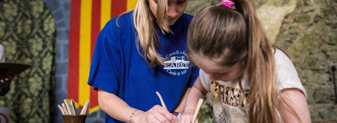 Wrth ddysgu am sut i amddiffyn y castell, bydd y plant yn dysgu am rôl y saer maen a’r pwysigrwydd o adeiladu castell cryf i wrthsefyll ymosodiad. Byddan nhw hefyd yn cymryd rhan mewn gweithdy sgiliau cleddyfau i sicrhau bod nhw’n barod i amddiffyn y castell, pe bai’r gelyn yn torri’r waliau!