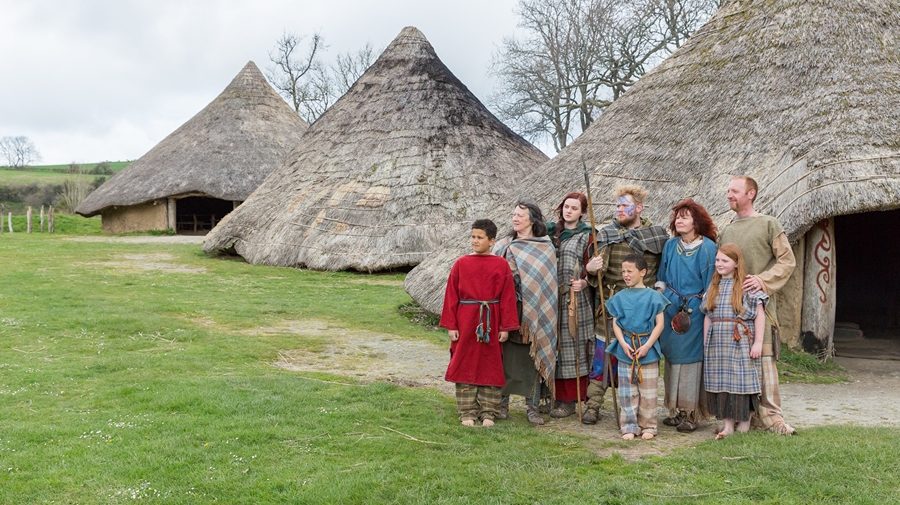 string(99) "Seven members of an Iron Age family sit round the fire in an Iron Age roundhouse at Castell Henllys"