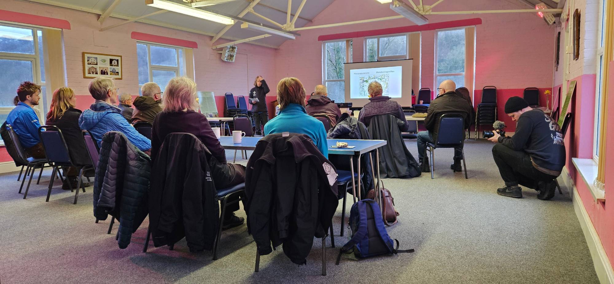Cafodd pawb oedd yn y digwyddiad glywed am yr holl waith cadwraeth amrywiol a gyflawnwyd yng ngogledd y Parc fel rhan o’r prosiect. Mae’r gweithgarwch hwn yn cynnwys gwaith ymarferol i adfer pori ar borfeydd Rhos er lles Glöyn Byw Brith y Gors a Mursen Las Penfro, gwaith arbenigol i warchod Cennau prin, gwaith gwirfoddol i fonitro’r Fran Goesgoch, y Pathew a Llygoden yr ŷd, gwarchod safleoedd gaeafgysgu’r Ystlum Pedol Mwyaf, a rhoi camau gweithredu wedi’u targedau ar waith i fynd i’r afael â’r rhywogaethau goresgynnol sy’n bygwth safleoedd pwysig.