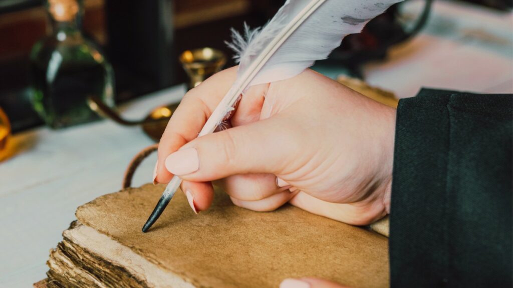 Wythnos yn ddiweddarach, ddydd Mawrth 11 Tachwedd, gall gwesteion deithio’n ôl mewn amser yn ystod y Gweithdy Caligraffeg – a gynhelir rhwng 4.30pm a 6.30pm. Bydd y rhai sy’n bresennol yn creu cwils o blu gŵydd, yn malu afalau derw i greu inc canoloesol, ac yn meistroli’r grefft o lythrennu â llaw, yn barod i ychwanegu cyffyrddiad personol a hanesyddol at eu cardiau Nadolig.