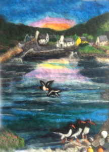 Wedi’i ysbrydoli gan y byd naturiol, mae Mic yn creu cerfluniau a lluniau gan ddefnyddio gwlân o braidd ei defaid o Wlad yr Iâ, alpaca lleol ac amrywiaeth o ffibrau naturiol.