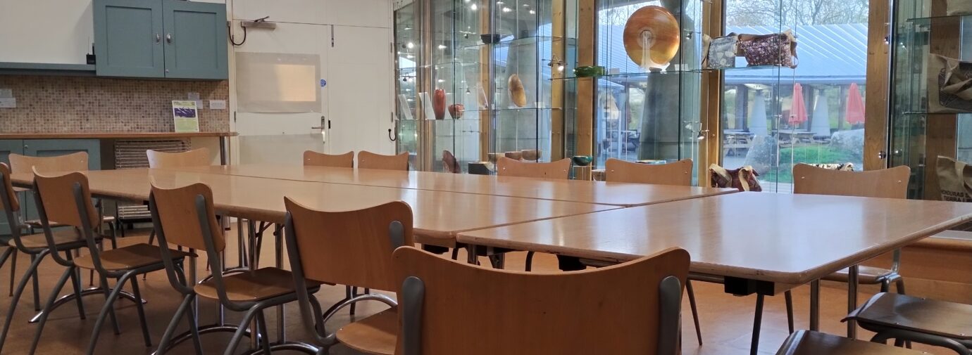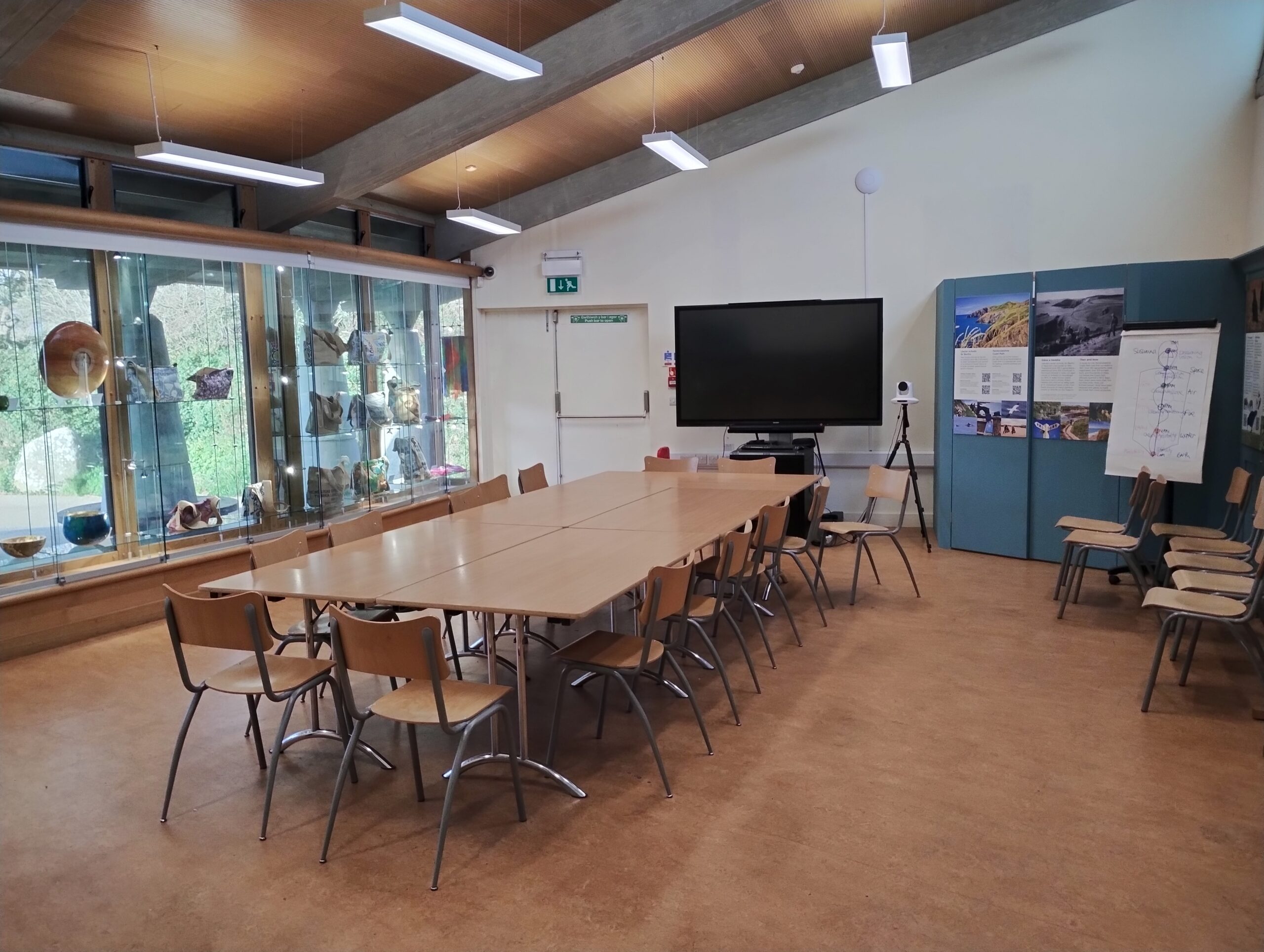 Mae’r Ystafell Darganfod yn lleoliad llachar, eang, a hynod amlbwrpas. Mae wal wydr lawn yn llenwi’r ystafell â golau naturiol, gan greu lleoliad ysbrydoledig ar gyfer creadigrwydd a digwyddiadau cymunedol. Yn ystod gwyliau’r ysgol, mae’n dod yn fyw gyda gweithdai celf — perffaith ar gyfer artistiaid ifanc. Drwy gydol y flwyddyn, mae grwpiau cymunedol lleol yn defnyddio’r lle ar gyfer popeth o sgyrsiau i sesiynau ioga. Mae ysgolion sy’n ymweld yn aml yn defnyddio’r ystafell ar gyfer profiadau dysgu ymarferol sy’n gysylltiedig ag arddangosfeydd oriel Amgueddfa Cymru. Mae’r wal wydr ddiogel hefyd yn gweithredu fel ardal arddangos, gan ddarparu lle delfrydol i artistiaid lleol arddangos gweithiau 3D fel cerameg, gemwaith, gwydr, cerfluniau a thecstilau.