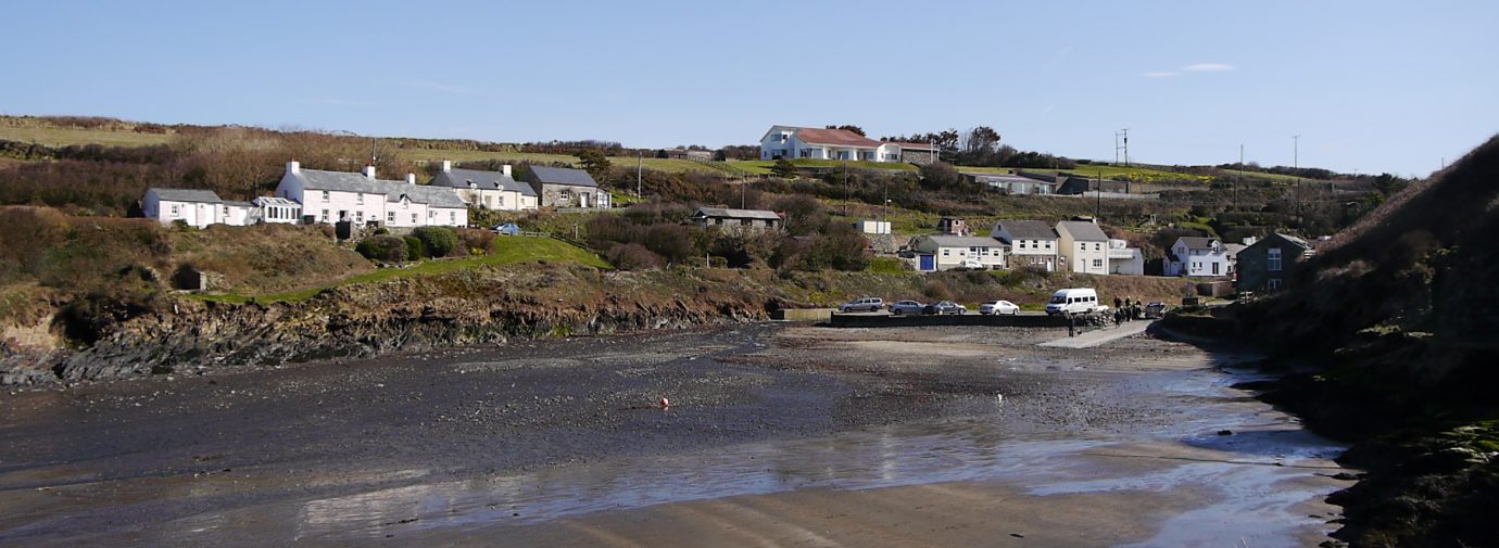 CHWILIWCH AM: Pentref pysgota prydferth gyda chychod • olion ydlofft • odynau calch • safle llinell rheilffordd Brunel a adwyd heb ei gorffen • golygfeydd gwych o’r arfordir.