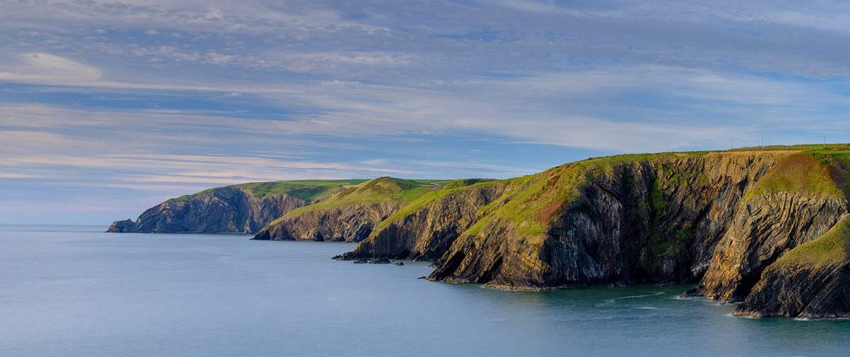 Er bod y Llwybr yn eithaf llydan, mae angen bod yn ymwybodol o’r gwymp sydyn i lawr tuag at y môr.