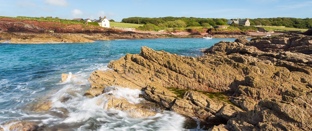 CHWILIWCH AM: Golygfeydd o’r arfordir • cildraethau bach tlws • eirch carreg agored yn y clogwyni ger yr odyn galch (Porthladd San Ffraid) • Eglwys San Ffraid • “castell” Fictoraidd