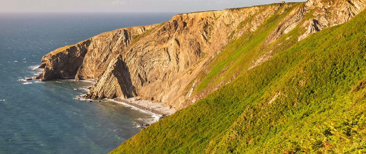 CHWILIWCH AM: Ailgyflwyno pori arfordirol • y clogwyni uchaf yn y Parc Cenedlaethol (550tr) • ffawtiau trawiadol yn y graig
