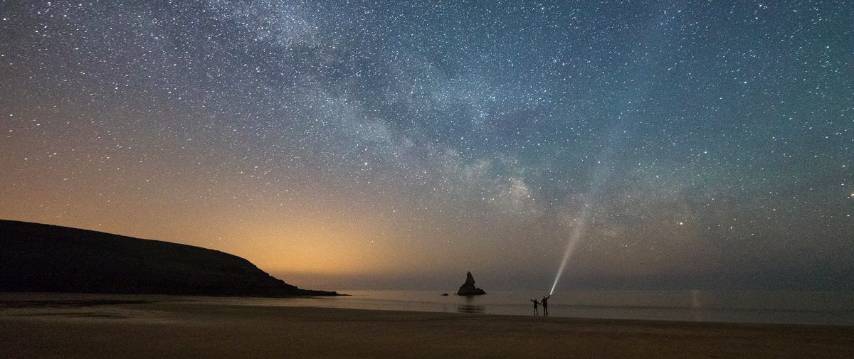 Ar arfordir gwyllt a garw Sir Benfro ceir rhai o‘r cyfleoedd awyr dywyll gorau yn y wlad, lle mae‘n bosib gweld y Llwybr Llaethog neu ‘r cytserau fel Orion gyda‘r llygad noeth.