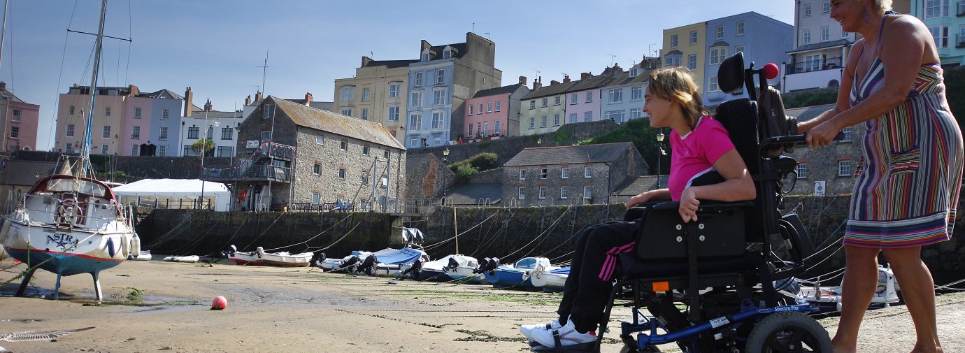 - Traeth y Harbwr: traeth tywodlyd bach sy’n wynebu’r Gogledd Ddwyrain, parcio cyfyngedig i ddeiliaid bathodyn glas, toiledau agosaf yn Nhraeth y Castell. Ramp balmantog: 1:18 i 1:12 am 19 metr.